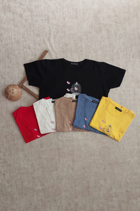 کراپ آستین کوتاه نخپنبه چاپ مرغ آمین