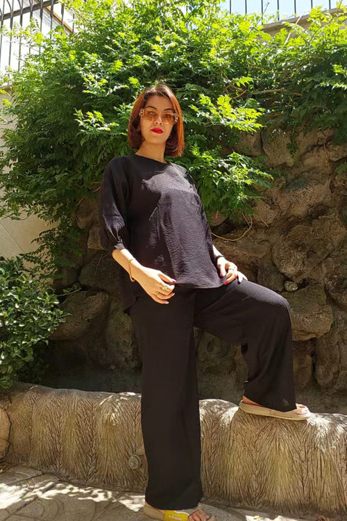جنس: صوفیا بارکد (سبک ،راحت، خنک) نخی تار پودی ، مشکی کریسپو درجه ۱